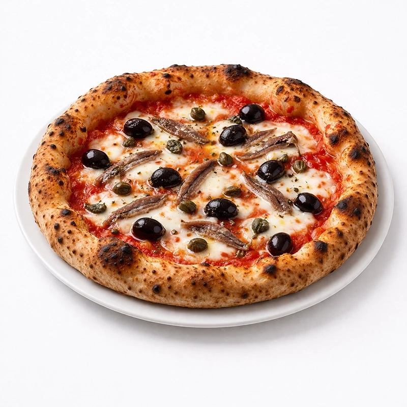 Tomatensauce, Mozzarella (Fior di Latte), Rucola, Mozzarella, Balsamico-Dressing.