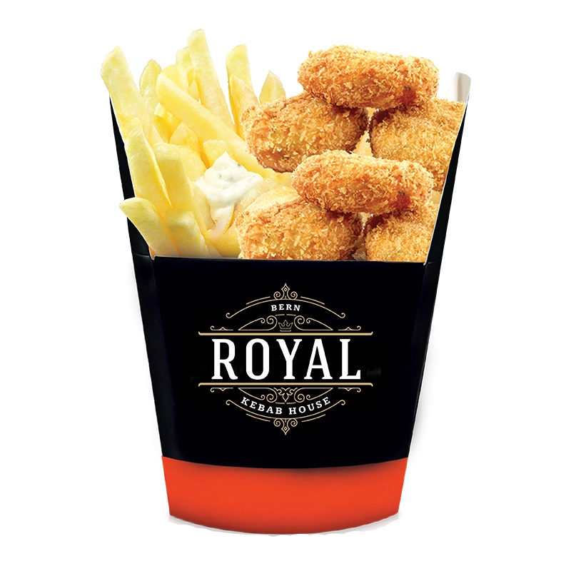 Chicken Nuggets, Pommes und Sauce nach Wahl